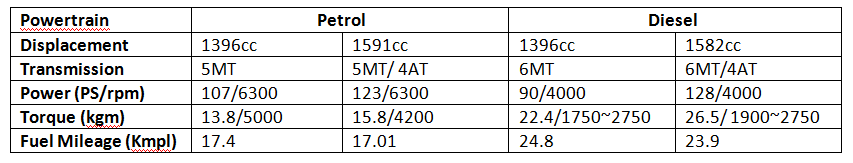 Under the bonnet, 4S Fluidic Verna holds two engine options, bestowing to buyers with choices of Gamma 1.4-and 1.6-litre MPI VTVT in petrol, and U2 1.4-and 1.6-litre CRDi in diesel. Both of them derive the options of manual and automatic transmission. Mentioned below are the exact details of technical specifications.