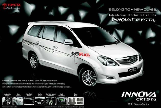 Toyota Kirloskar Motors recently announced about the launch of their new Innova Crysta car, a limited edition vehicle that will be another addition to the Innova’s premium and luxury position. The car dubbed as the Innova Crysta is named after Crystal, reflecting the vehicle’s premium image.